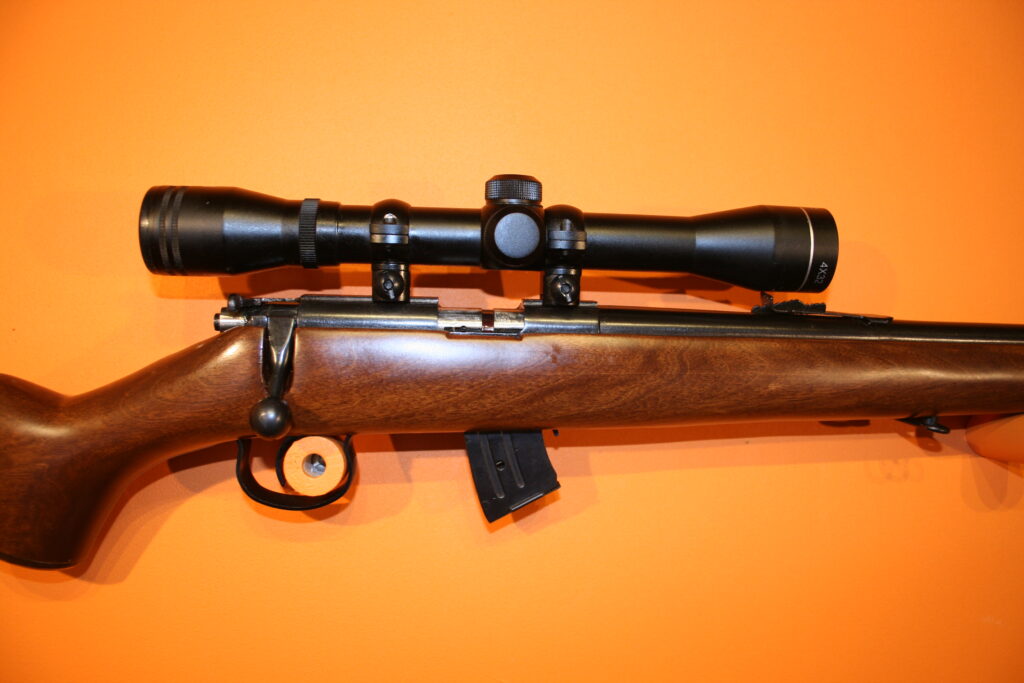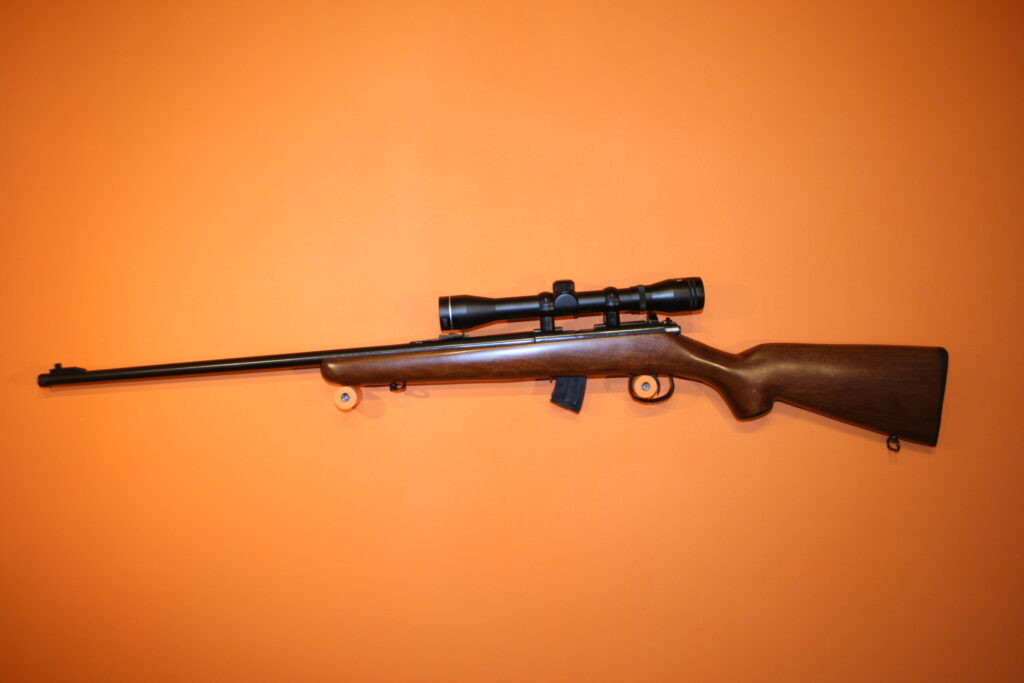 Carabine de tir de loisir NORINCO .22LR avec sa lunette. Ensemble en bon état. Canon fileté, possibilité d’y visser aisément un réducteur de son. Crosse bois avec grenadières. Idéal pour tirs récréatifs.