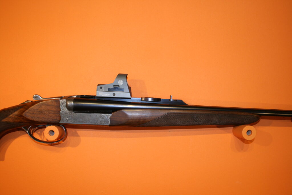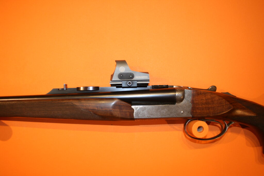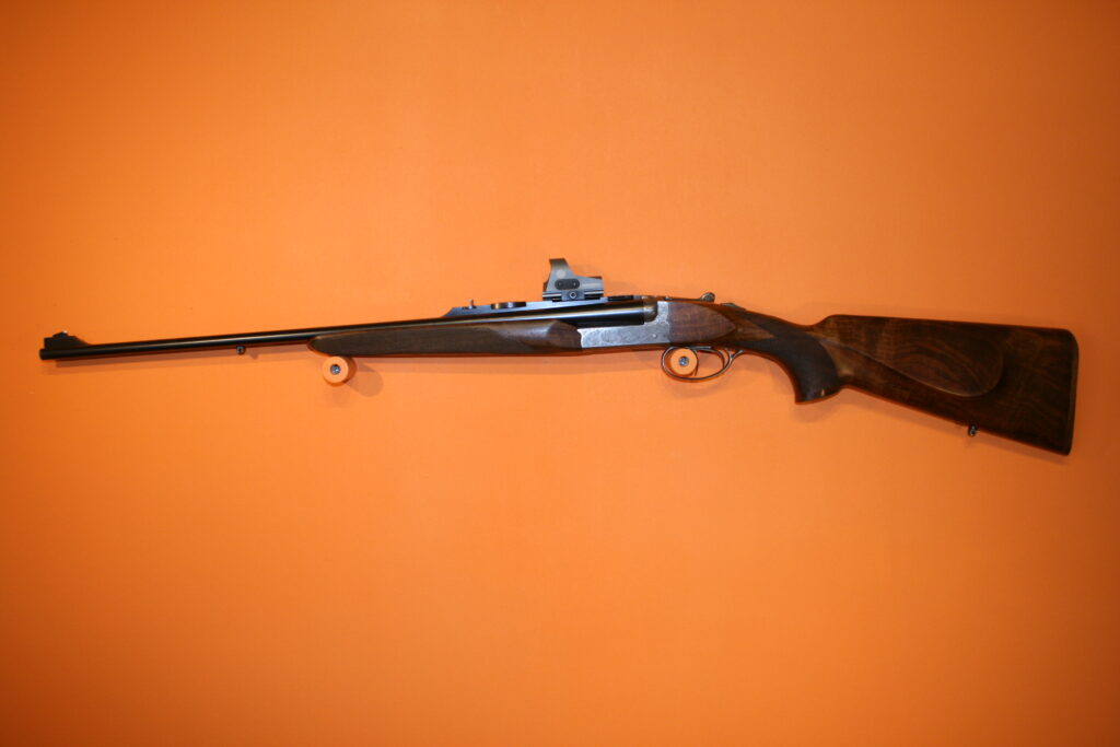 EXPRESS juxtaposé de la marque Française CHAPUIS. Très bon état. Bois magnifiques. Crosse avec joue bavaroise. Montage pivotant EAW.