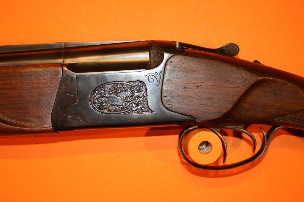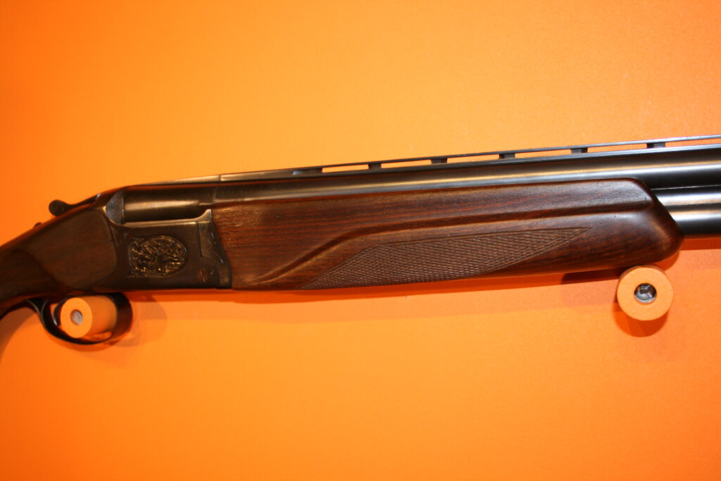 Superposé BAIKAL IJ 27 en calibre 12/70. Bon état général. Quelques coups sur les bois. Grenadières présentes. Calibre en 12/70 chokes fixes 1/2 et full.