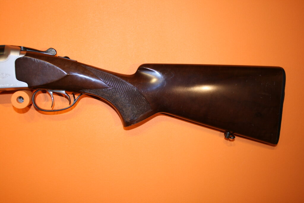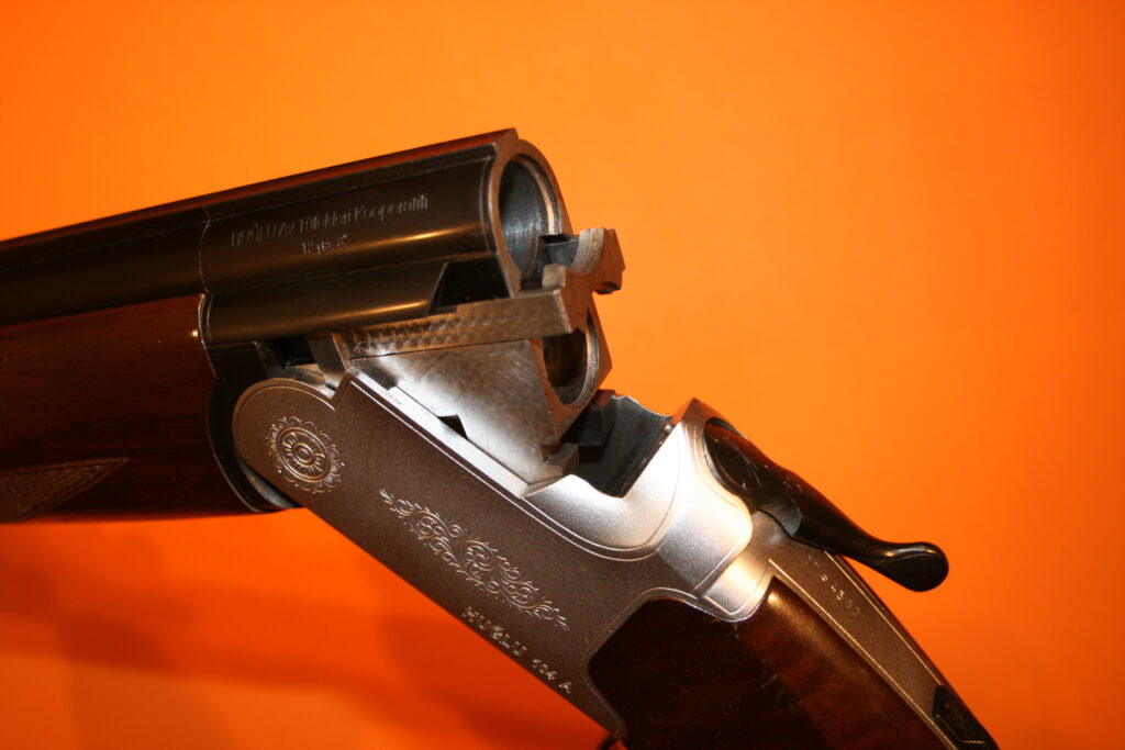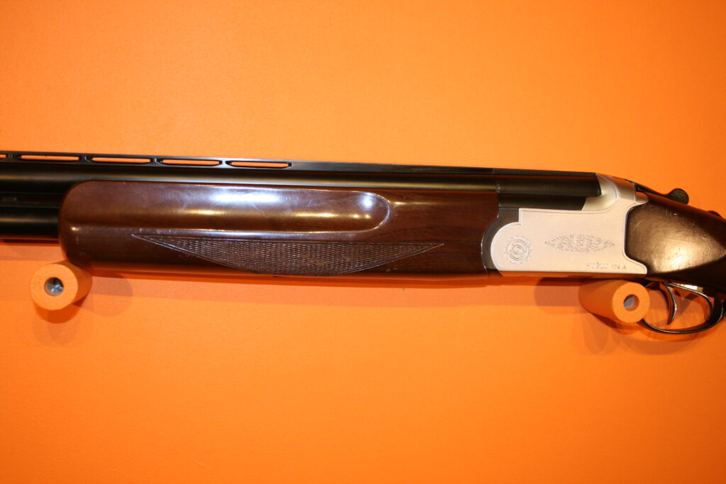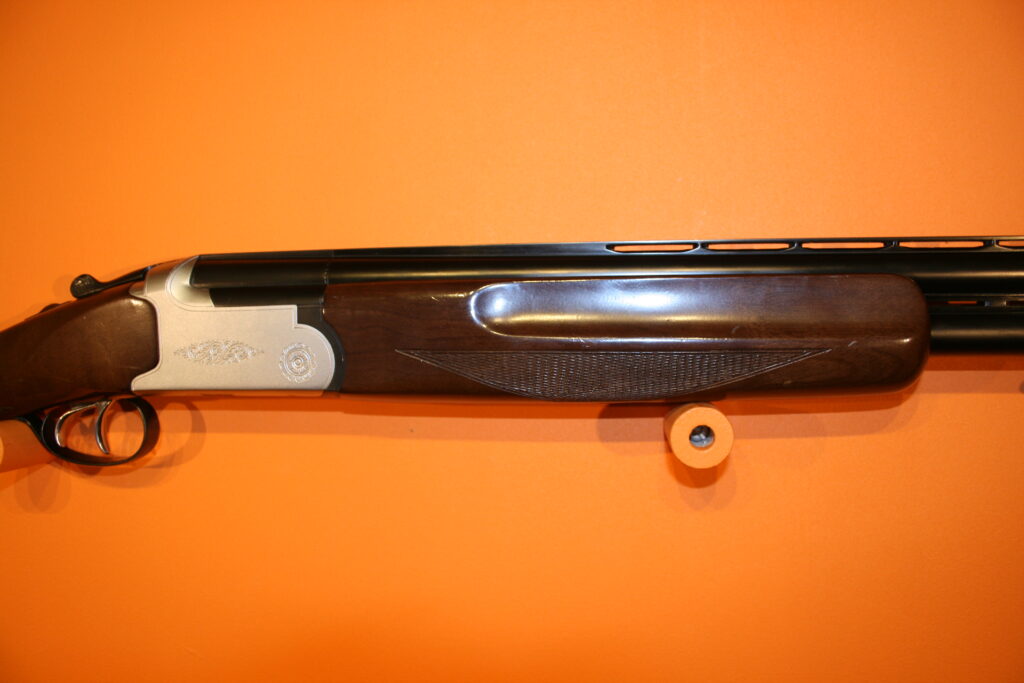 Superposé HUGLU 104 A. Large bande de visée. Grenadières présentes. Usure sur les bois notamment au niveau de la poignée et de la calotte. Canons de 71cm en calibre 12/76. Chokes interchangeables.