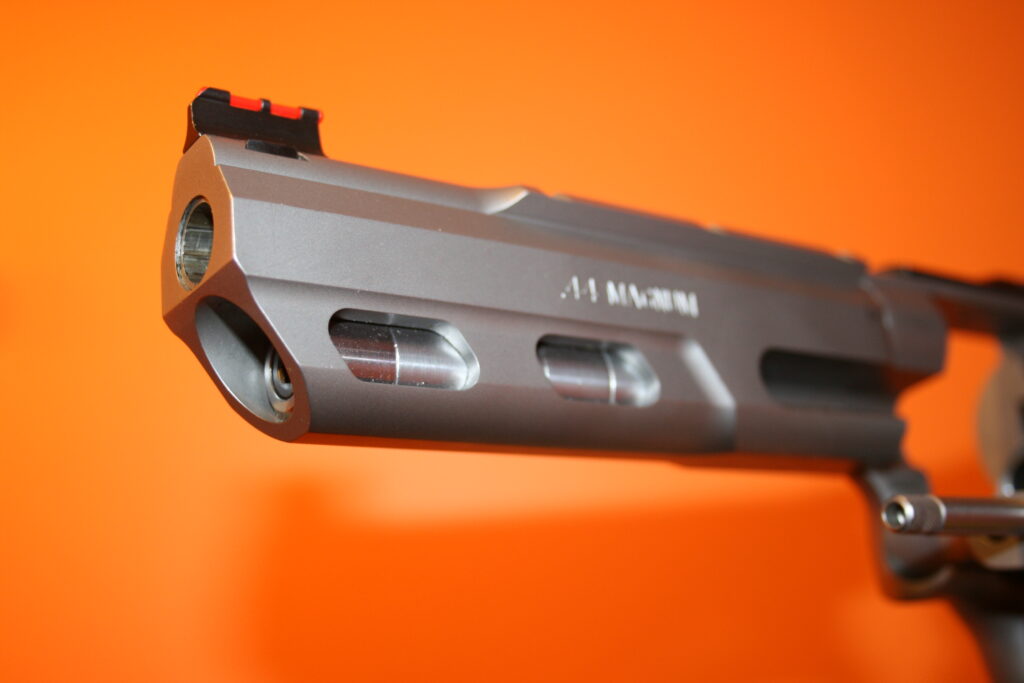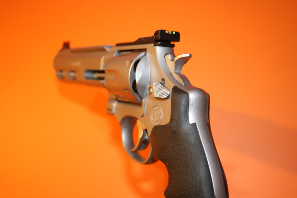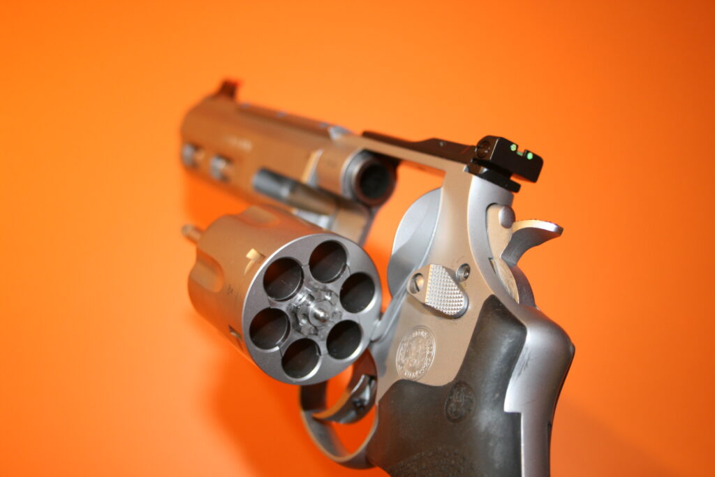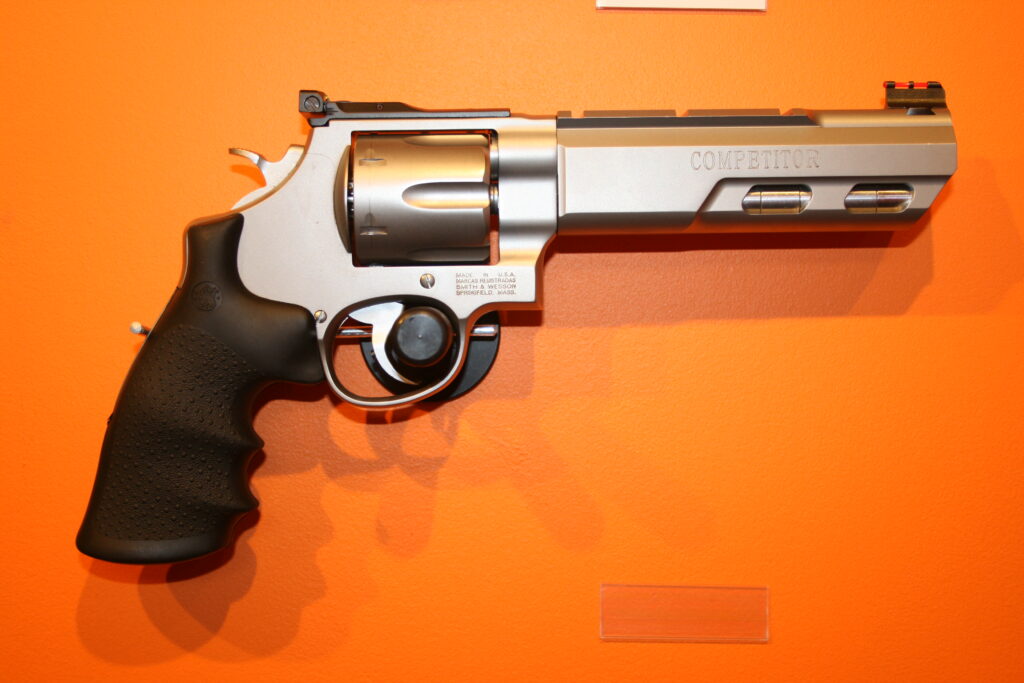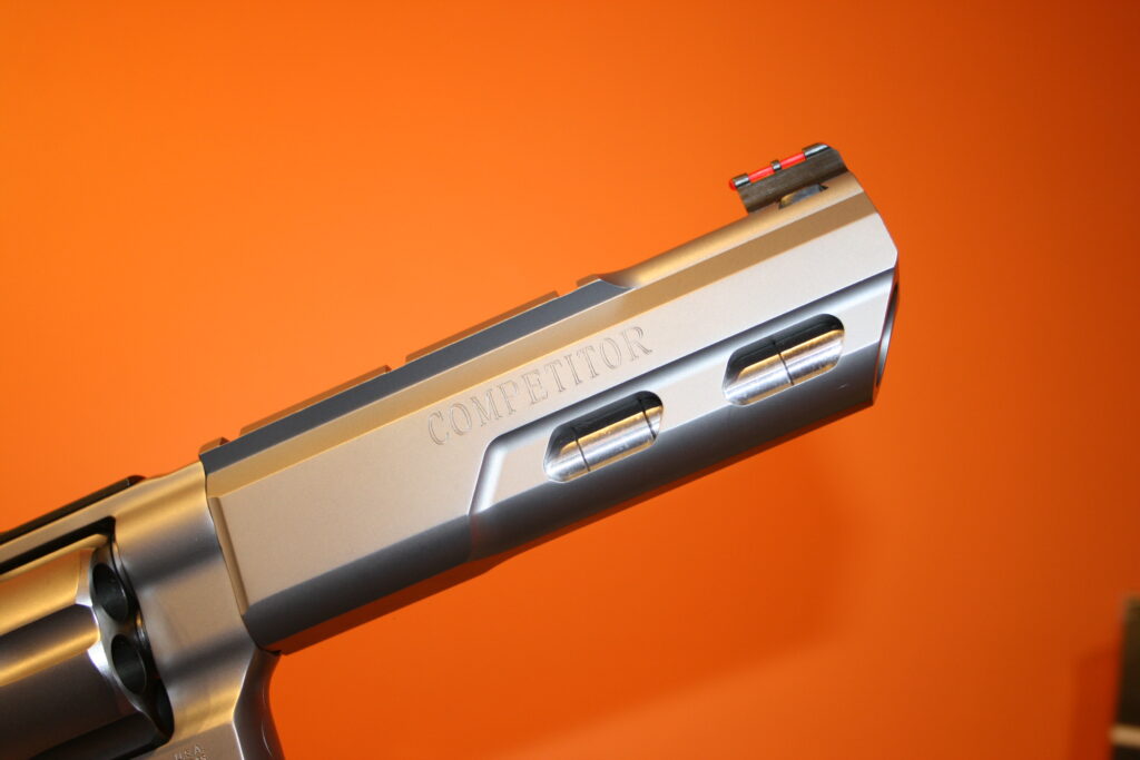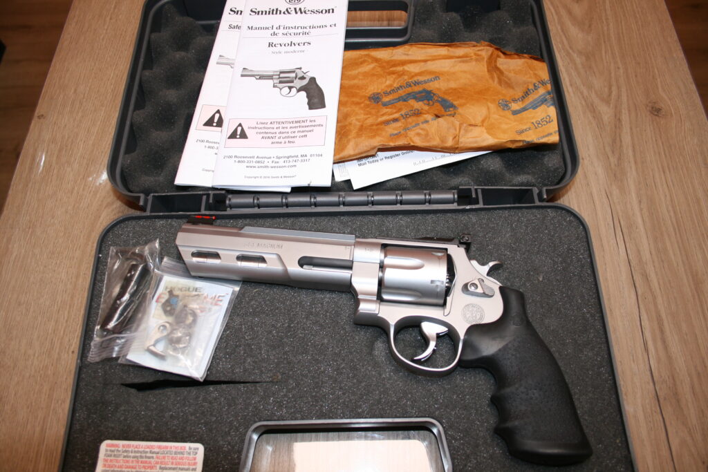 Révolver SMITH & WESSON 629 COMPETITOR. Calibre .44 Magnum. Cran de mire réglable, fibre verte. Guidon fibre rouge. Arme en excellent état sans aucune rayure. Poids de départ très agréable permettant de faire de beaux résultats en cible. Rail permettant rapidement l’installation d’un point rouge. Fournie avec sa mallette d’origine SMITH & WESSON.
