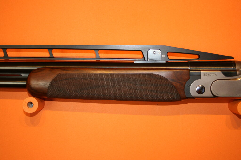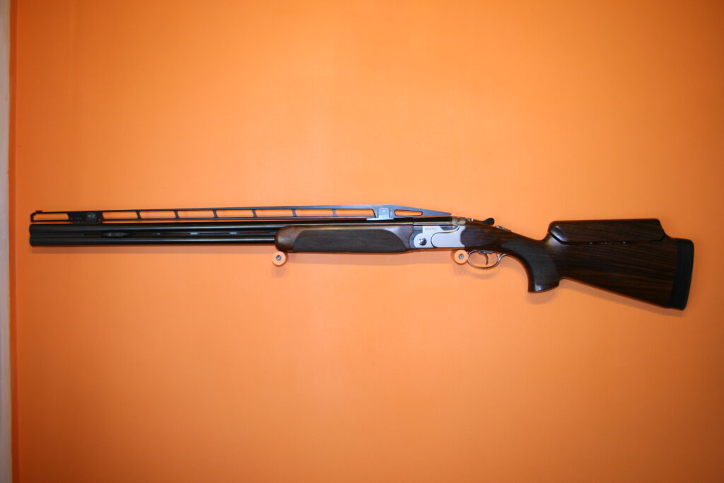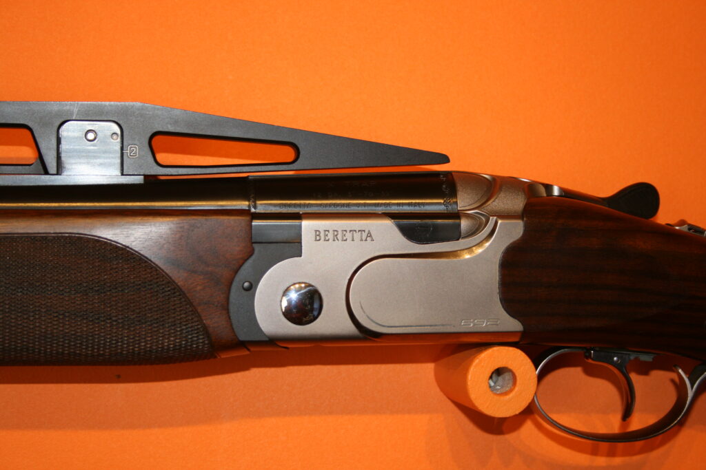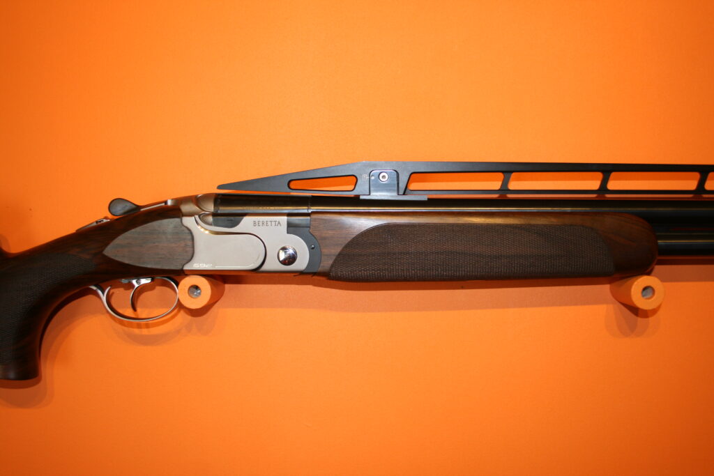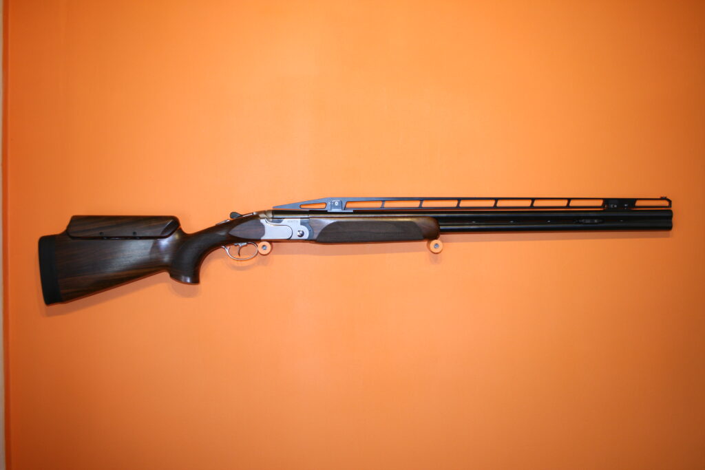 Fusil de fosse BERETTA 692. Calibre : 12/76. Canons de 81cm. Arme en excellent état très proche du neuf. Absence de rayures et de coups. Bande haute. Busc réglable. Contrepoids réglables sur la bande intermédiaire. Fournie avec sa mallette d’origine comprenant chokes et accessoires.