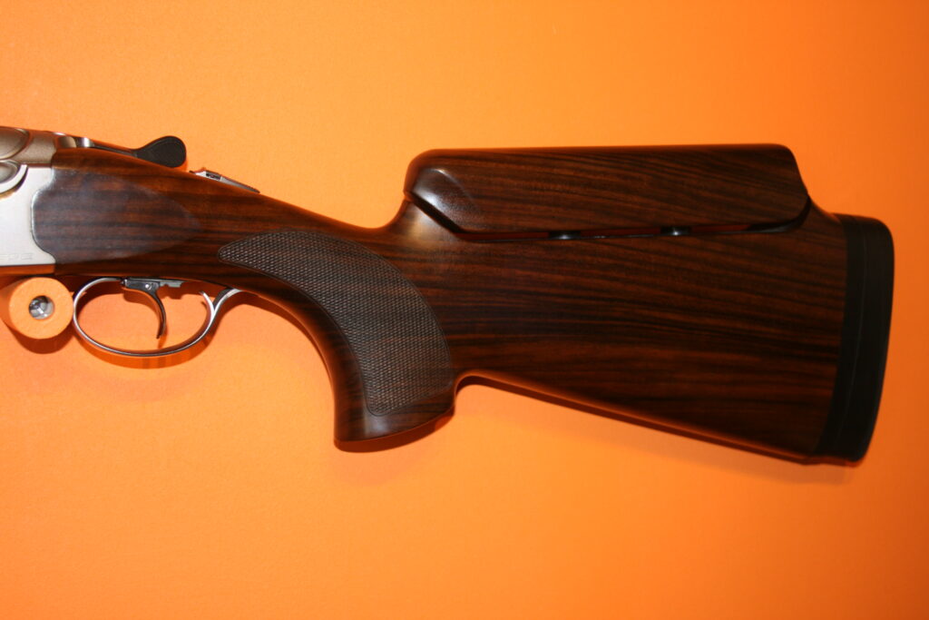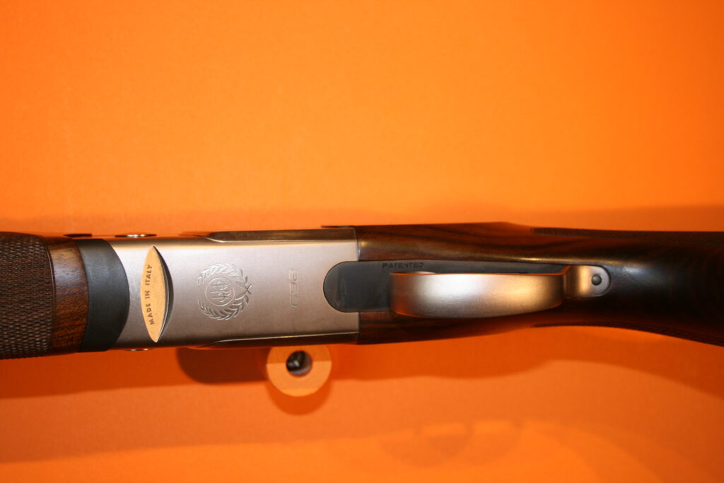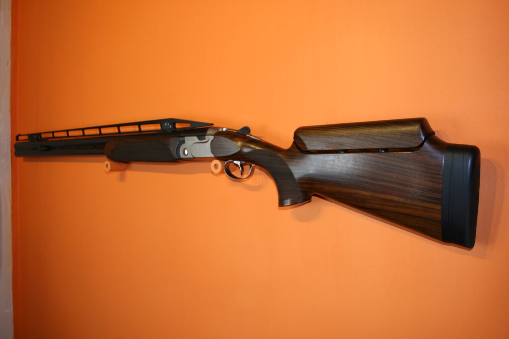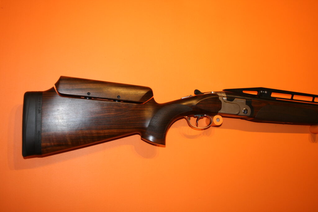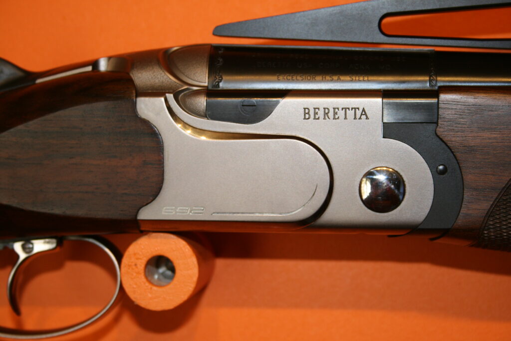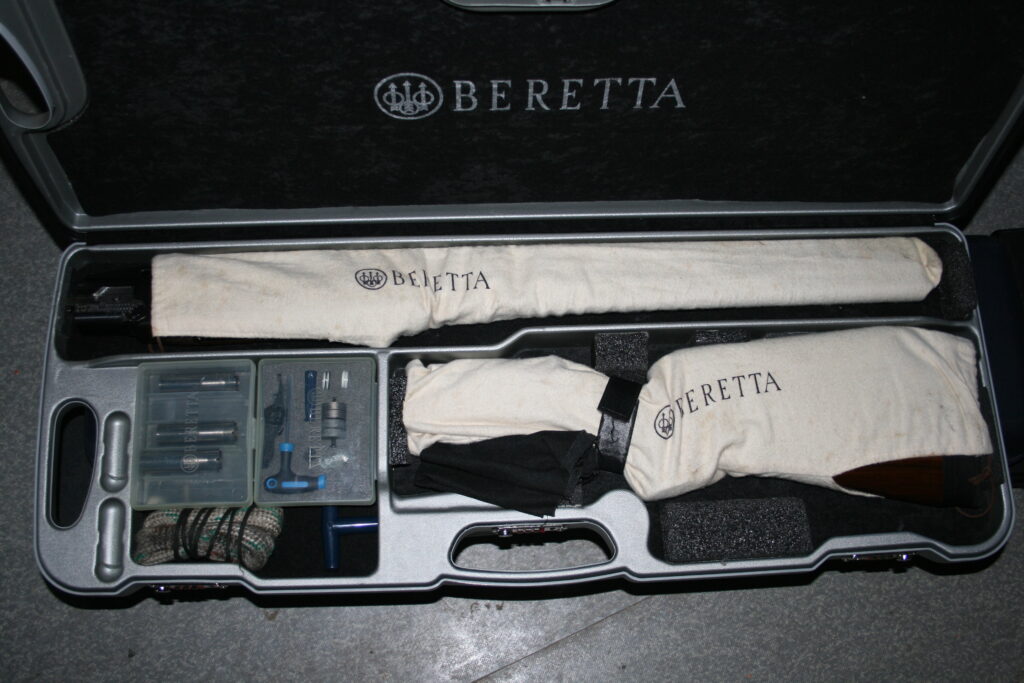 Fusil de fosse BERETTA 692. Calibre : 12/76. Canons de 81cm. Arme en excellent état très proche du neuf. Absence de rayures et de coups. Bande haute. Busc réglable. Contrepoids réglables sur la bande intermédiaire. Fournie avec sa mallette d’origine comprenant chokes et accessoires.