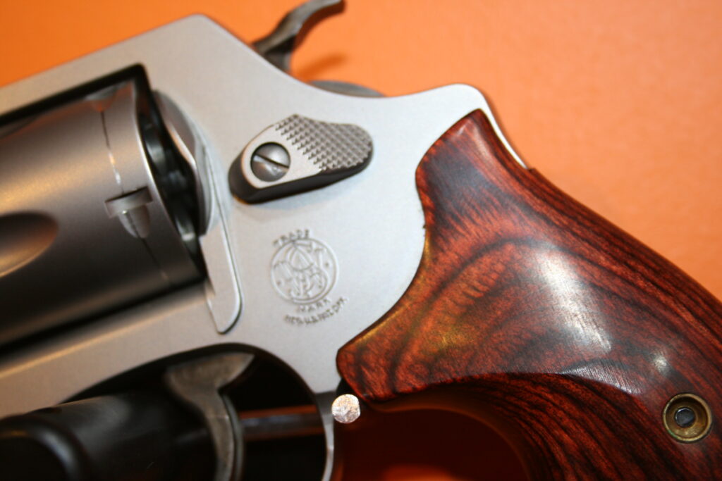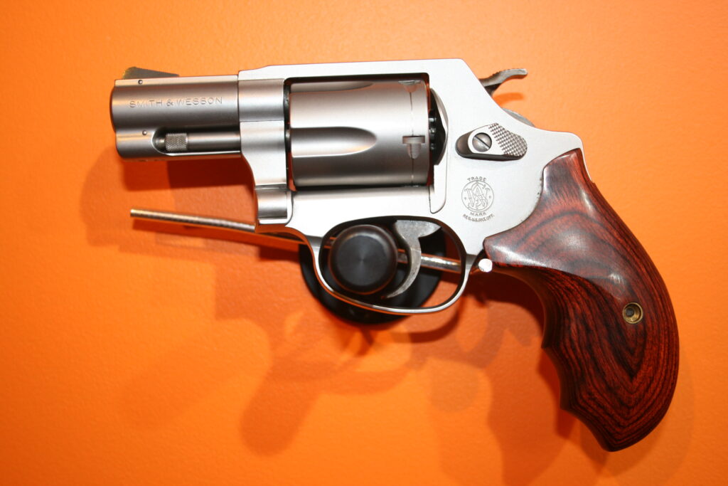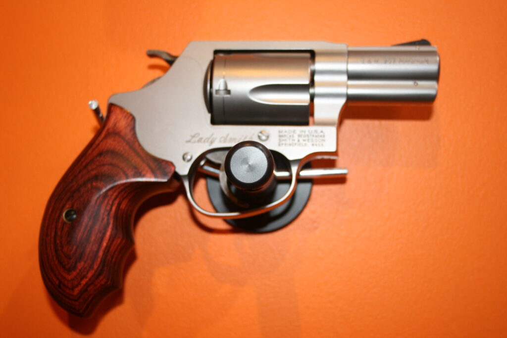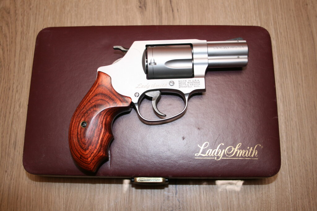 Révolver SMITH & WESSON modèle 60 dans sa version “LADY SMITH”. Calibre .357 Magnum (pouvant chambrer également du .38 Spécial ou Wadcutter). Canon de 2 pouces. Barillet de 5 coups. Très belle version, à la fois virile et féminine avec sa petite boite spécifique. Très bon état mécanique et esthétique. Poignée bois magnifique.