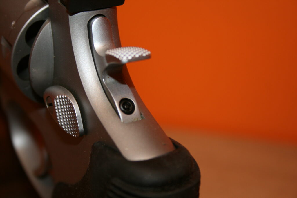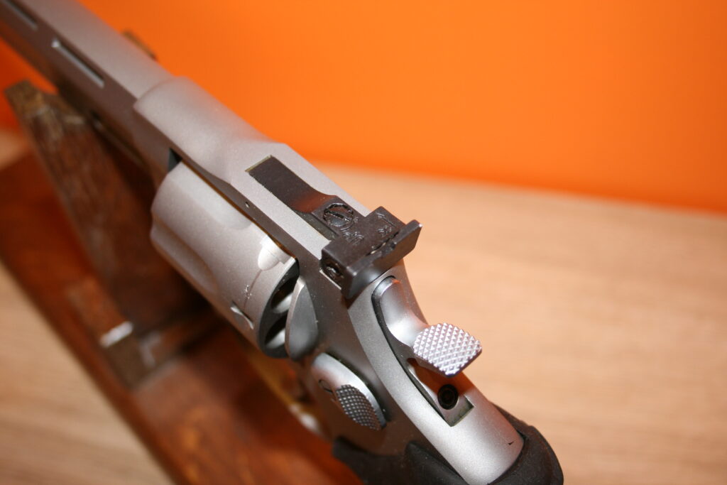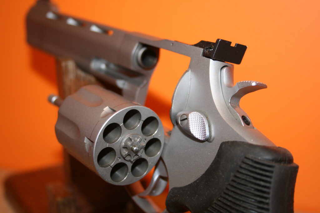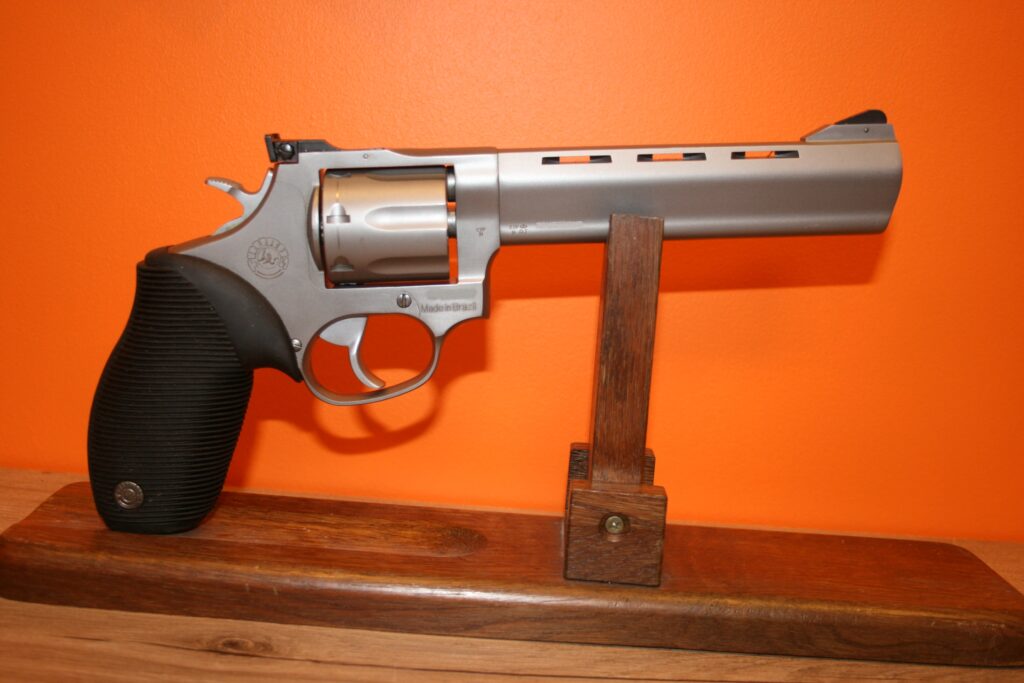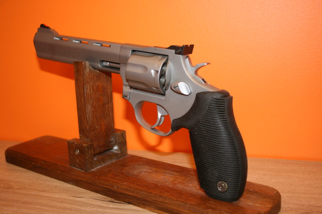 Révolver TAURUS TRACKER COMPETITION PRO. Calibre .357 Magnum. Canon de 6 pouces à l’état miroir. Barillet d’une capacité de 7 coups. Hausse réglable en hauteur et en dérive. Modèle avec système de verrouilage du marteau pour le transport et le stockage en toute sécurité (clé livrée avec). Très bon état mécanique (indexation, jeux, barillet, percussion) et esthétique. Livré avec mallette et protection de hausse en caoutchouc.