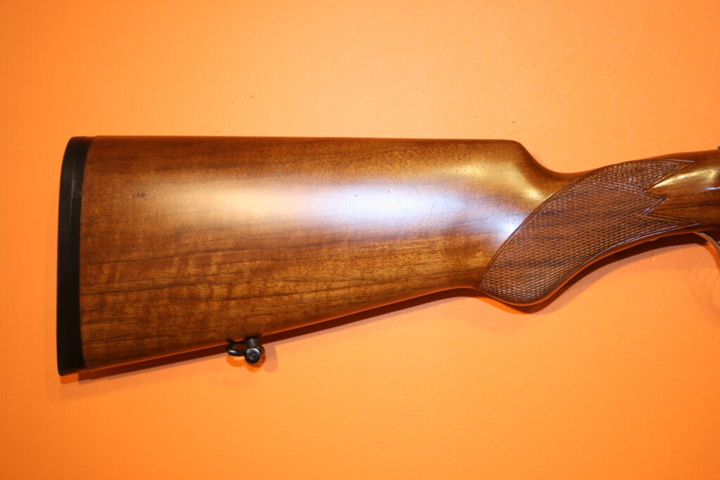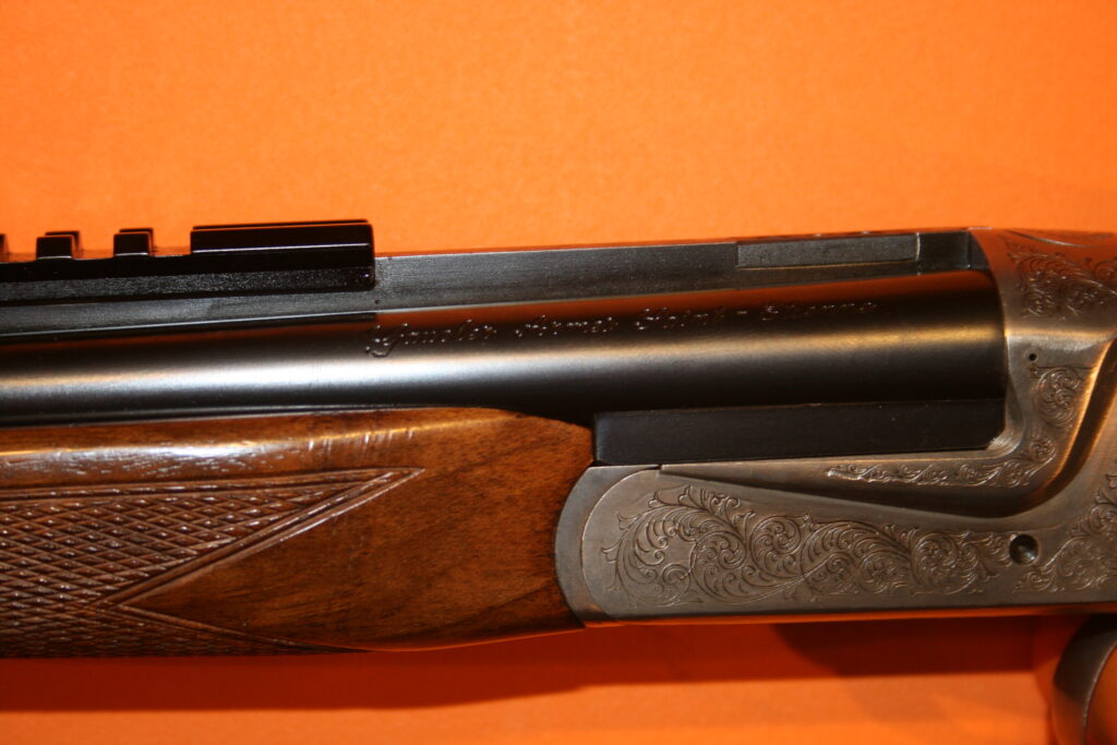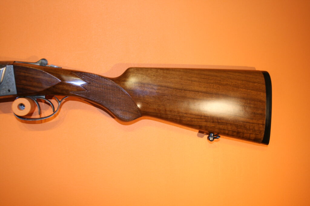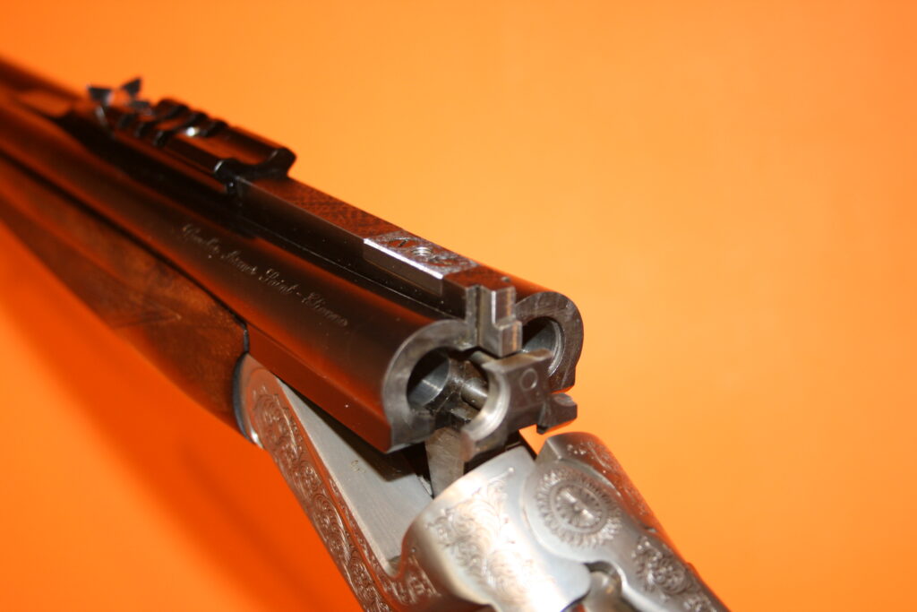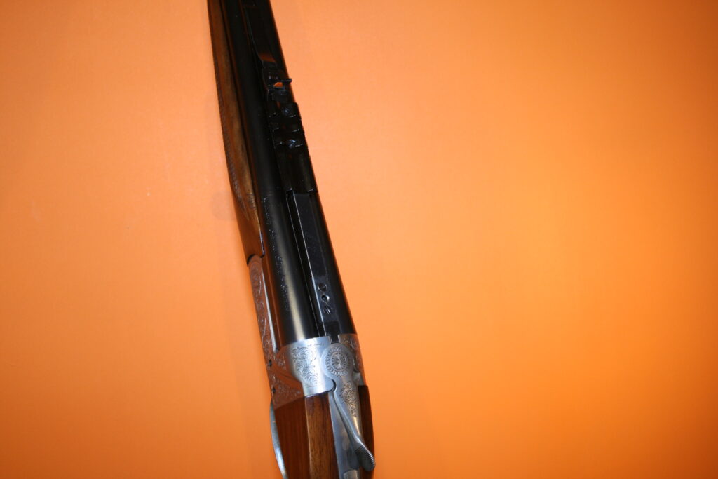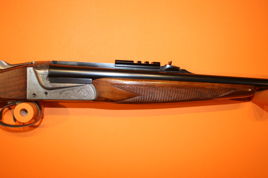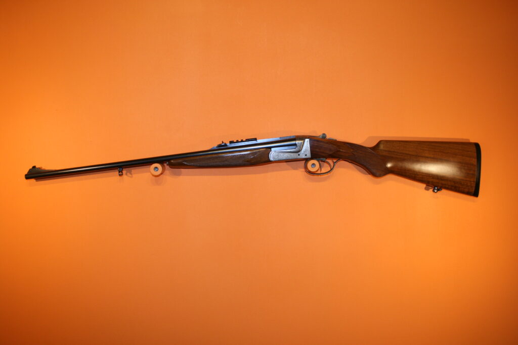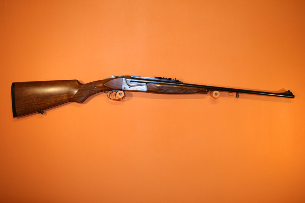 Express juxtaposé de la marque Française GAUCHER. Fabriqué à Saint-Etienne. Calibre 9,3x74R. Extracteurs. Canons de 60 cm. Longueur totale : 112 cm. Poids : 3,3 kg. Grenadières présentes. Rail Picatinny permettant la fixation aisée et rapide d’une optique ou point rouge. Très bon état mécanique. Pas de jeu. Quelques petites rayures sur les bois (à peine visible). Canons miroirs.